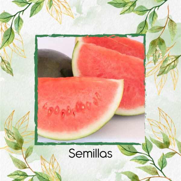 • Descripción: La sandía es una planta herbácea monoica, cuyo origen se presume en África, donde aún hoy crece en forma silvestre. Existe actualmente un amplio catálogo de variedades de sandía, que se clasifican por diferentes características agronómicas; como el color de la cáscara, tamaño del fruto, forma, sabor, etc. La germinación de las semillas, que están distribuidas por la pulpa, requiere temperaturas relativamente altas, mínimas de 12 a 16ºC con un óptimo entre 28 a 35ºC. Prospera mejor en suelos franco-arcillosos, de buen drenaje, sin exceso de agua, fértiles, con alto contenido de materia orgánica y un rango de tolerancias a pH relativamente amplio, de 5,5 a 7,5. Estas frutas se asocian al verano y no es de extrañar; puesto que es un alimento con gran contenido en agua, el 92% de su composición, y contiene importantes electrolitos. Estas frutas son ricas en vitamina C, que es esencial para nuestro sistema inmunológico y, por tanto, protege nuestro cuerpo y nos ayuda a combatir, por ejemplo, los resfriados. La sandía contiene licopeno, que es especialmente importante para nuestra salud ósea. El licopeno dietético, que está presente en algunos alimentos como la sandía o los tomates, reduce el estrés oxidativo que normalmente aminora la actividad de osteoblastos y osteoclastos.