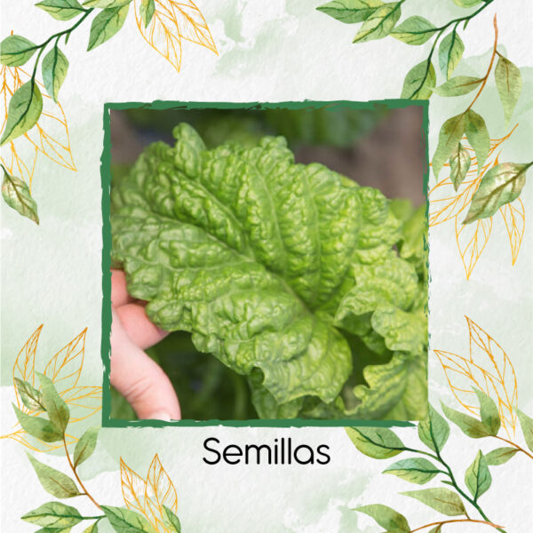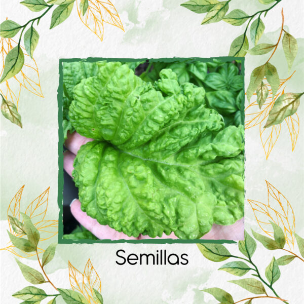 • Descripción: la albahaca hoja de lechuga tiene las hojas muy grandes, arrugadas y muy aromáticas, tiene un ligero aroma y sabor a menta. Espectacular en ensaladas y excelente para usar en aceites y pesto de hierbas, debido a su color verde más claro puede ofrecer una opción diferente a la albahaca dulce tradicional de color verde oscuro, la albahaca hoja de la lechuga de es una variedad italiana muy popular en Napoles, sus hojas grandes y arrugadas crecen a alrededor de 10 cm de largo en una planta arbustiva compacta que puede crecer hasta 30 cm de altura. Las plantas de albahaca son una de las hierbas aromáticas más populares para cultivar y también una de las más fáciles. La albahaca (Ocimum basilicum) es un miembro de la familia de la menta y está estrechamente identificado con la cocina italiana, aunque es originario de la India. Las hojas extremadamente aromáticas también tienen una deliciosa variedad de sabores, desde la albahaca dulce, pasando por la albahaca limón hasta la albahaca canela y regaliz. Los colores de las hojas abarcan desde el verde intenso hasta el púrpura profundo, con hojas lisas o arrugadas. Las flores son insignificantes pero muy populares entre las abejas. Todos los tipos de albahaca crecen fácilmente en un clima cálido y soleado. Las hojas se utilizan comúnmente en la cocina, pero los capullos y flores también son comestibles. En la mayoría de los climas la albahaca es una tierna anual que solo dura hasta la primera helada y debe ser replantada cada temporada. La albahaca está lista para comenzar a cosechar en aproximadamente 60 a 90 días, a partir de la siembra de las semillas. La cosecha frecuente o el pellizco de las hojas mantendrán sus plantas de albahaca produciendo hojas frescas por más tiempo. Puede pellizcar hojas individuales o quitar las partes superiores de una planta grande si necesita una gran cantidad. Deberá evitar que la albahaca florezca durante el mayor tiempo posible cosechando o pellizcando los juegos superiores de hojas tan pronto como la planta alcance aproximadamente 15 cm de altura. Si la planta establece flores, está en camino de ir a la semilla y no crecerá tupida, las hojas existentes comienzan a disminuir en sabor, así que no tema cortarlo y usarlo lo antes posible. Las flores también son comestibles, así que no se desespere si unas pocas plantas se adelantan a usted. La albahaca crece mejor a pleno sol. Tendrá menos problemas de enfermedades y las plantas serán más resistentes y frondosas. La albahaca es una amante del calor. No se moleste en plantar hasta que las temperaturas diurnas permanezcan en los 21 º C y las temperaturas nocturnas sean superiores a 10ºC. Las semillas se pueden comenzar en el interior de tres a cuatro semanas antes de la fecha de la última helada de la primavera. A diferencia de muchas hierbas mediterráneas, a la albahaca le gusta un suelo algo rico y no le gusta que se mantenga seco. Separe las plantas en torno a 25 cm. Comience a pellizcar las partes superiores una vez que las plantas alcancen aproximadamente 15 cm de altura. Si no pellizcas o cosechas, las plantas crecerán altas y desgarbadas, con pocas hojas, y pronto generarán semillas. La albahaca se planta tradicionalmente junto con las plantas de tomate. Se dice que se ayudan mutuamente a crecer. Colocada en las ventanas, ahuyenta los mosquitos