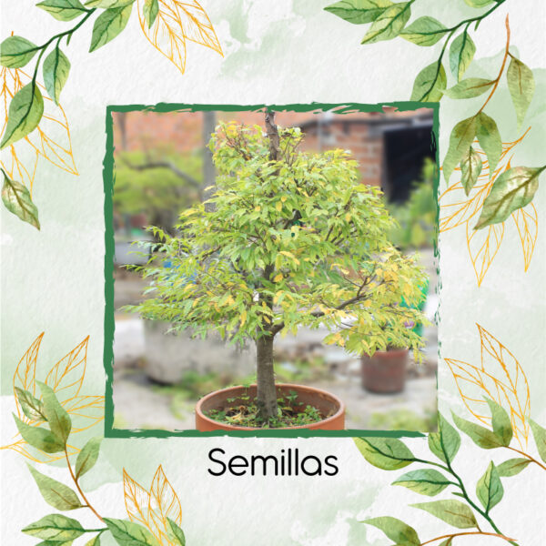 • Descripción: Su tronco es grisáceo claro y liso con hojas muy frondosas, con ramas que tienen hojas más pequeñas en sus propias hojas. Si logra florecer, estas serán de color amarillo con un olor muy rico.